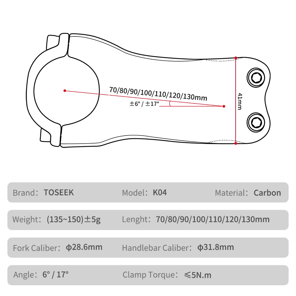 K04 Carbon Stem 6/17Degree Mountain Bike Stem 31.8Mm Handlebar Stems 70/80/90/100/110/120/130Mm Black Matt Bicycle Parts