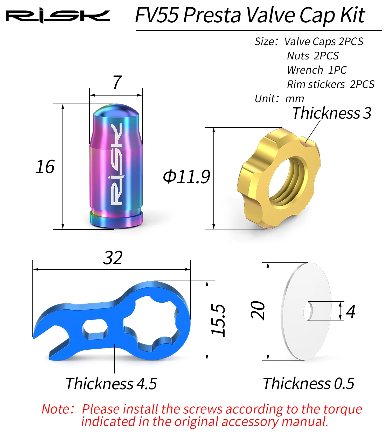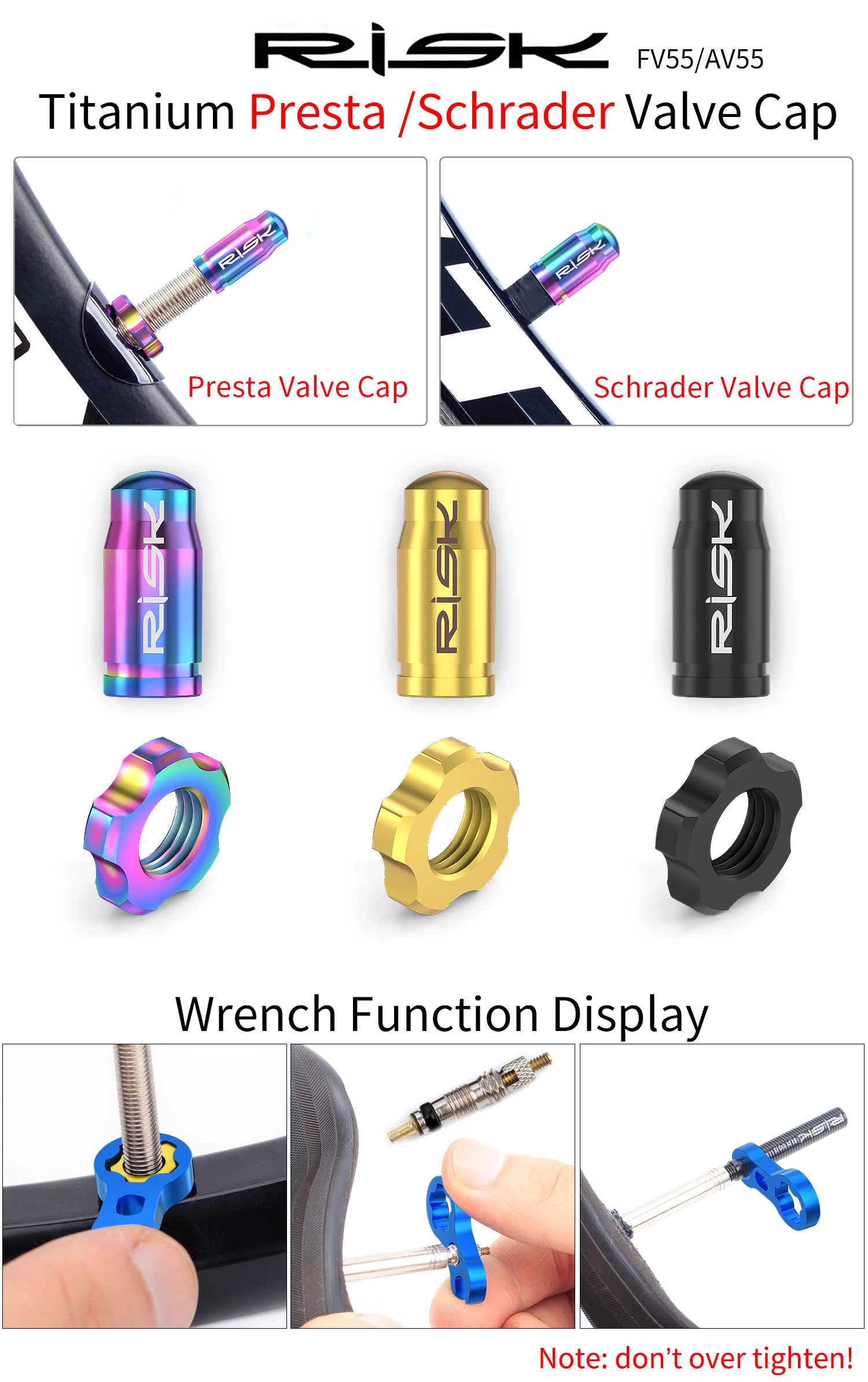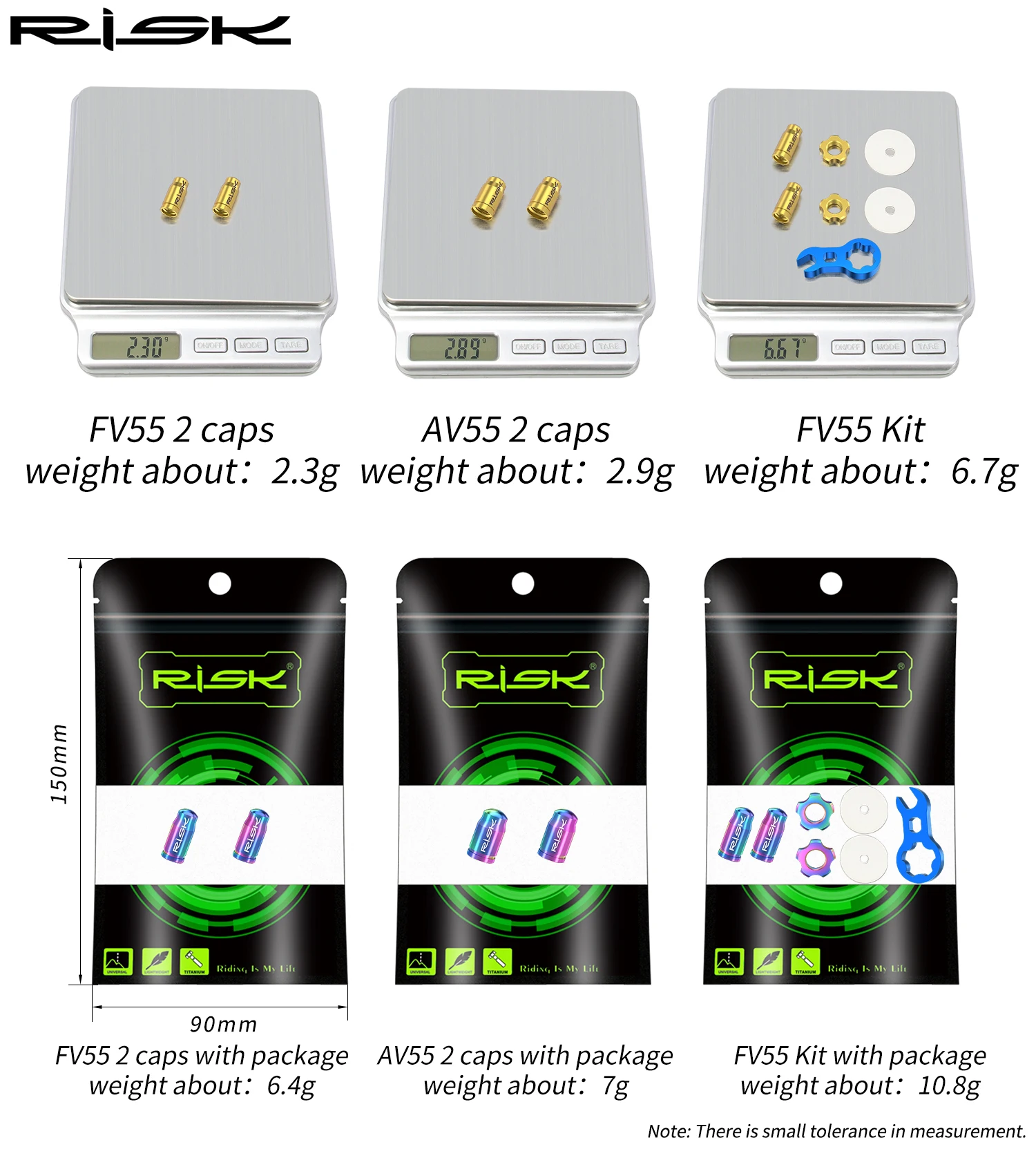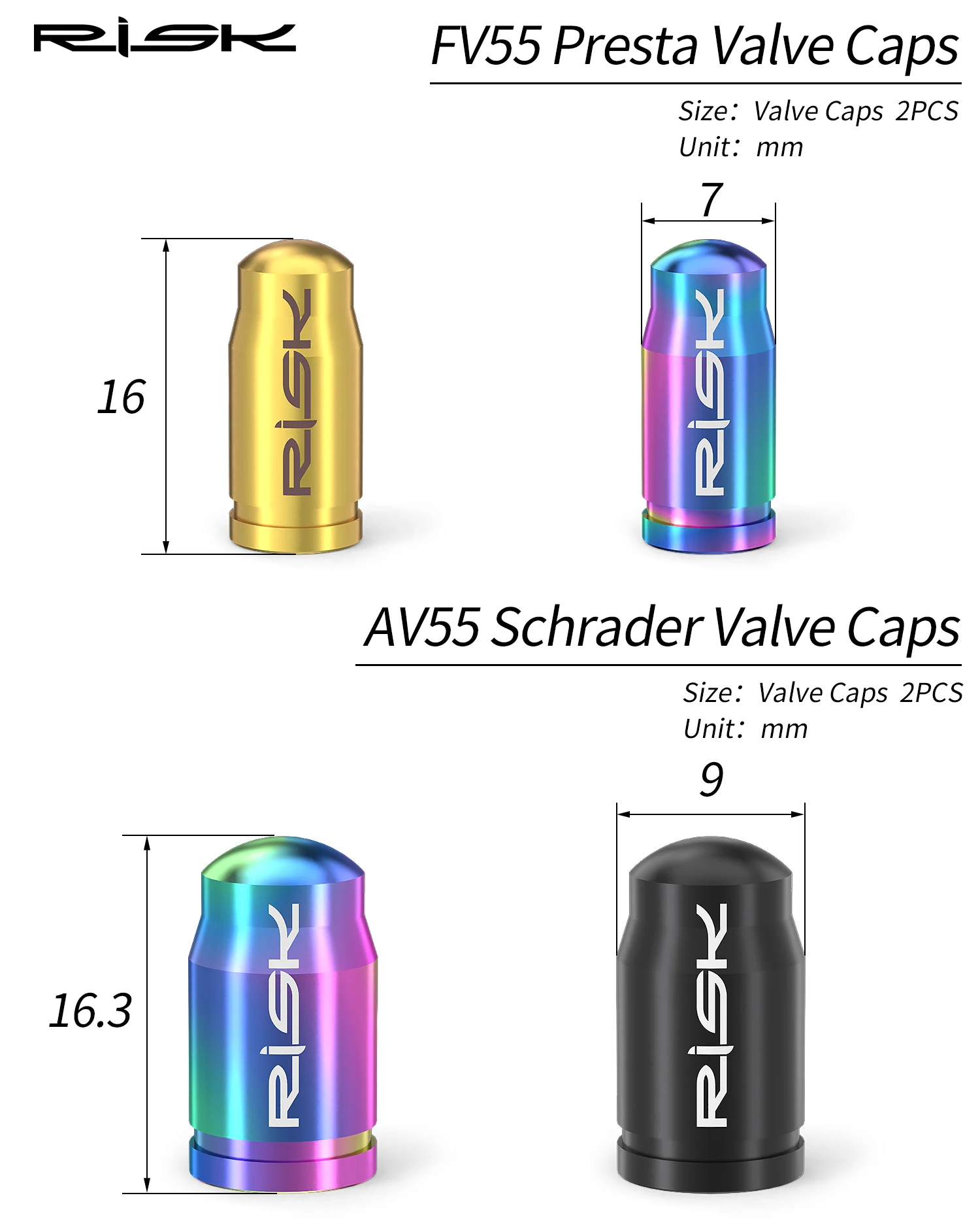 2Pcs Fv valve caps about 2.3g2pcs Av valve caps about 2.9g